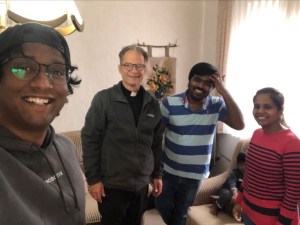 From left to right, Vimstan Moses, yours truly, Jeba and Annie Kumar—and Cedric (3 years old) on the couch next to mom. All of them are from India and their families have been Christians for generations. They are members of KELC and we took Holy Communion in their home. After the Sacrament Annie prepared a delicious chai tea with Indian specialties for us all. Just before I left, Cedric sang a bit of one of his favorite hymns, “Thooya, Thooya, Thooya” (“Holy, Holy, Holy”) in Tamil, their native language. (Notice the LSB lying on the coffee table J). A blessed time of Christian fellowship!