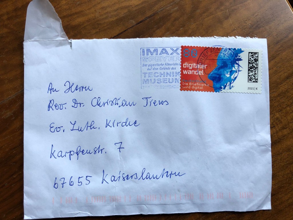 A few days ago I received a letter, mailed to the address of Kaiserslautern Evangelical Lutheran Church where I currently serve. I had no idea who the sender was…The back of the envelope just stated the sender’s last name, with a local address. I opened it up. It was from a Dr. H… G…, residing at certain address. This is what it read: “Dear Brother Christian! We met at the Bus-Station on May 2…”