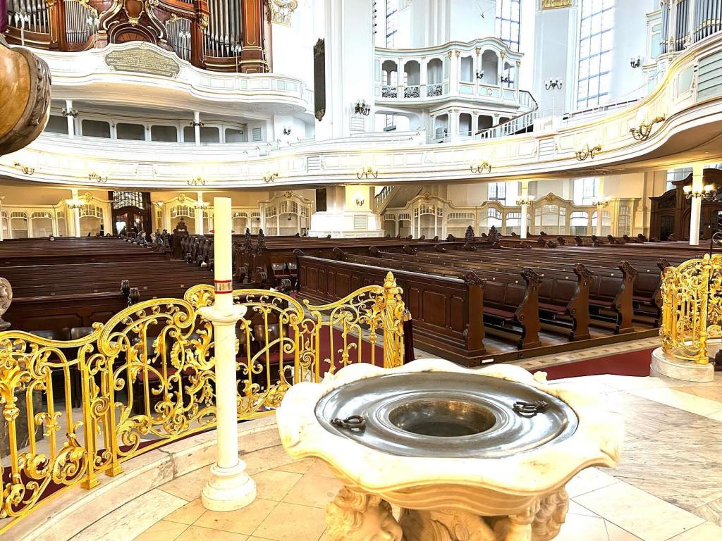 Last week, Lula and I attended a Lenten service at Hamburg’s St. Michaelis, which was built in 1647 and now belongs to the Protestant “state church” (EKD). As we stepped into the beautiful edifice, some 150 feet long and 130 feet wide, a sign read: “Lenten service in the chancel.” We proceeded through the cavernous yet museum-like nave, virtually devoid of human life. Stepping up to the chancel, we sat down on chairs that had been set up facing the ornate baptismal font. I counted a total of 19 attendees—in a church that holds 2,000. The service began with an organ recital, followed by two hymns, one of which was “O Haupt voll Blut und Wunden” (“O Sacred Head, Now Wounded”). The lyrics were penned by 17th century Lutheran pastor Paul Gerhardt who beautifully describes *why* Jesus had to die: “What Thou, my Lord, hast suffered Was all for sinners’ gain; Mine, mine was the transgression, But Thine the deadly pain. Lo, here I fall, my Savior! ‘Tis I deserve Thy place; Look on me with Thy favor, And grant to me Thy grace.” The Gospel reading was John 19:16-30, the passage that includes Jesus’ famous exclamation, “It is finished.” What a rich phrase and springboard for a fine sermon! Sadly, all we heard was a vague statement on the sorry state of the world. I felt like a starving and thirsty person who has been handed a can of food and a bottle of wine, but who has neither a can opener nor corkscrew—and must remain hungry and parched. At the same time, thank God for pastors who can also write hymns. Even if all else in the service fails, they will still “deliver the goods,” crushing us with the Law and making us alive again with the precious Gospel. Sure enough, Pastor Gerhardt saved that service in his 6th stanza, which we sang in conclusion: “My Savior, be Thou near me, When death is at my door; Then let Thy presence cheer me, Forsake me nevermore! When soul and body languish, O leave me not alone, But take away mine anguish By virtue of Thine own!” (Engl. transl. ©1941, CPH).