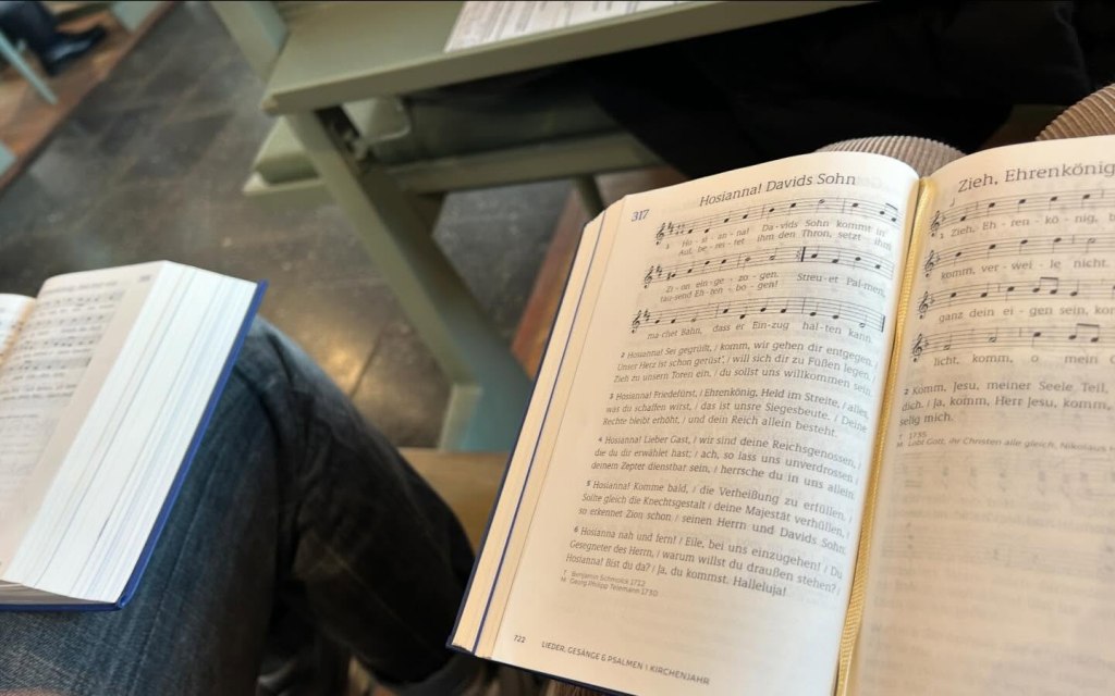 “Let the word of Christ dwell in you richly, teaching and admonishing one another in all wisdom, singing psalms and hymns and spiritual songs, with thankfulness in your hearts to God” (Colossians 3:16). Last week I attended a German service at one of our Hamburg SELK churches—as a parishioner. As I walked into the narthex, a German congregant came up to me and said, “Pastor, there’s a young man from Afghanistan here who needs help.” She introduced me. “What can I do for you?” I asked. Skipping nary a beat, he replied: “I need four things: I want to be baptized. I need a girlfriend. I need an apartment. And I want to be integrated in German society.” “What’s your name?” I asked. “’Rahim,” he replied. “Well, Rahim, I can definitely help you with the first one. But as far as those other three things are concerned…” I added with a grin, “You’ll need to talk to Jesus…”Our Persian ministry takes place in a different church, and I can walk you over there later if you wish. But for now, would you like to sit next to me during the service?” Rahim appreciated the offer and followed my lead as we stood up and sat down during the various parts of the service. Rahim even sang along to some of the hymns—softly. During Holy Communion, he knelt at the altar rail. I had explained earlier that he should fold his arms across his chest to receive a blessing, but after attending the 12-week class to learn the basics of Christianity and after being baptized, he too would be allowed to receive the Lord’s true body and blood. During the service, I prayed that the Lord would send a fellow Persian to accompany us to the other church, so Rahim might already have a buddy. Sure enough, the Lord provided. After the service, the three of us took the 30-minute walk to the other church. where I introduced him to my Finnish missionary colleague Rev. Pasi Palmu and some Persian parishioners. And indeed, Rahim attended the baptismal class. Praise God that the Lord is opening up the heart and mind of this young Afghan to His Psalms, hymns, spiritual songs, and even providing Christian fellowship! (Image: sitting in the pew; Rahim to my left).